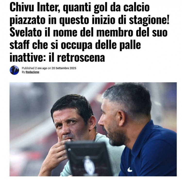 9月21日讯 国米本赛季的任意球攻击 依然是一大利器,而负责这方面练习 的是齐沃的助教帕隆博。
