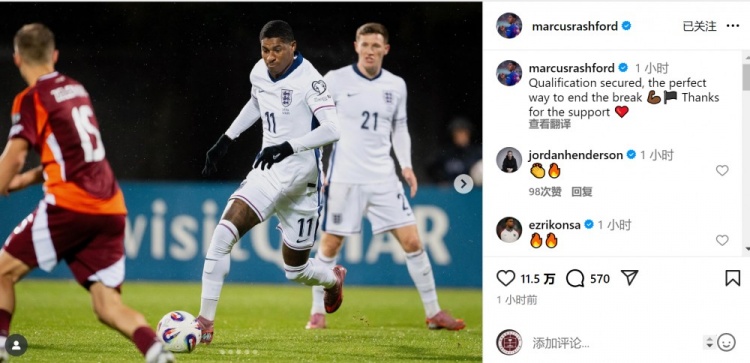 拉什福德此役为英格兰后备 出场,苏超直播赛后他在社交媒体上晒出赛事 照片意甲:ac米兰客场7-0狂胜都灵,配文:“获得世界杯赛 资格,以完美的方式结束这个国际赛事 日。感谢大家的支持。”