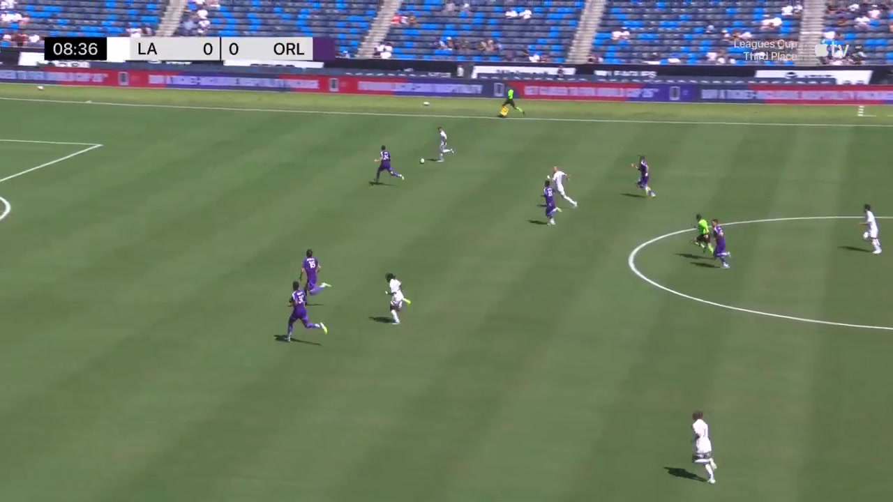 罗伊斯在这场赛事 约第9分钟时,为洛杉矶银河队攻入第一球。