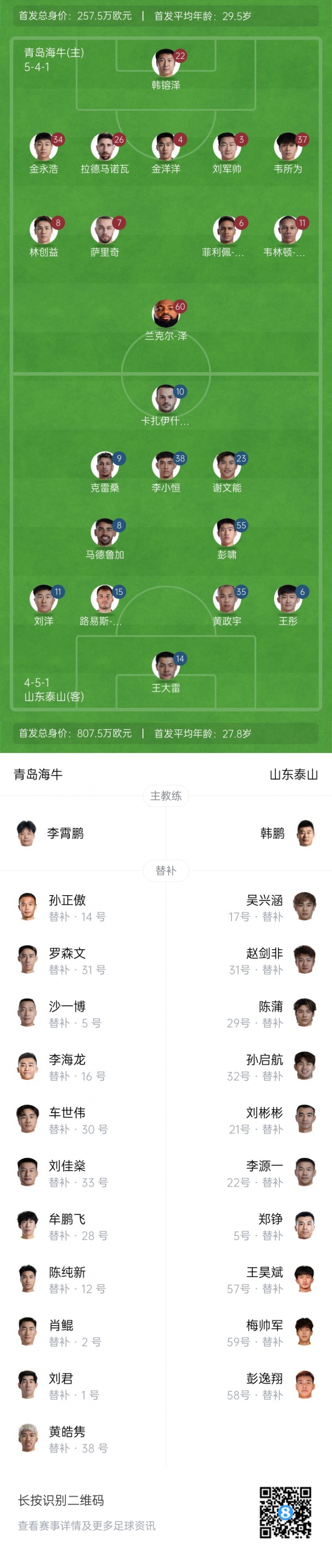 09月20日讯 北京时间20点,中超第25轮,青岛海牛vs山东泰山,赛前双方杆位公布!【青岛海牛方面,韦林顿领衔5外援先发,韩镕泽、刘军帅战旧主;山东泰山方面2025欧冠决赛结果,江苏卫视直播入口官网瓦科、克雷桑登场,彭啸、李小恒出战,泽卡缺阵。】