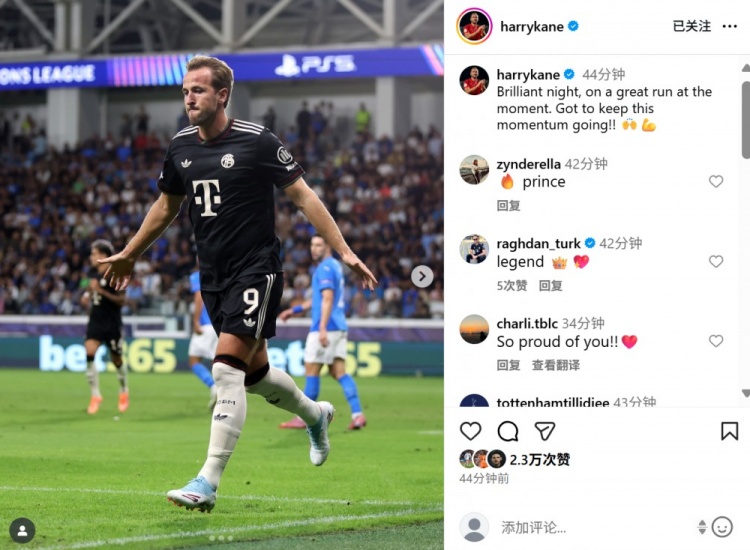 10月1日讯 在本轮欧冠,拜仁5-1大胜帕福斯,凯恩连进两球。